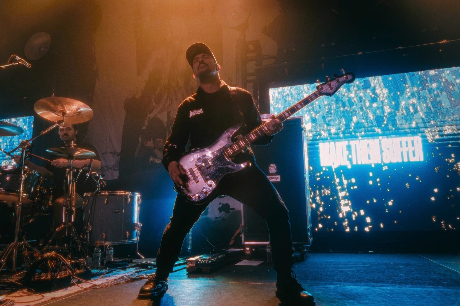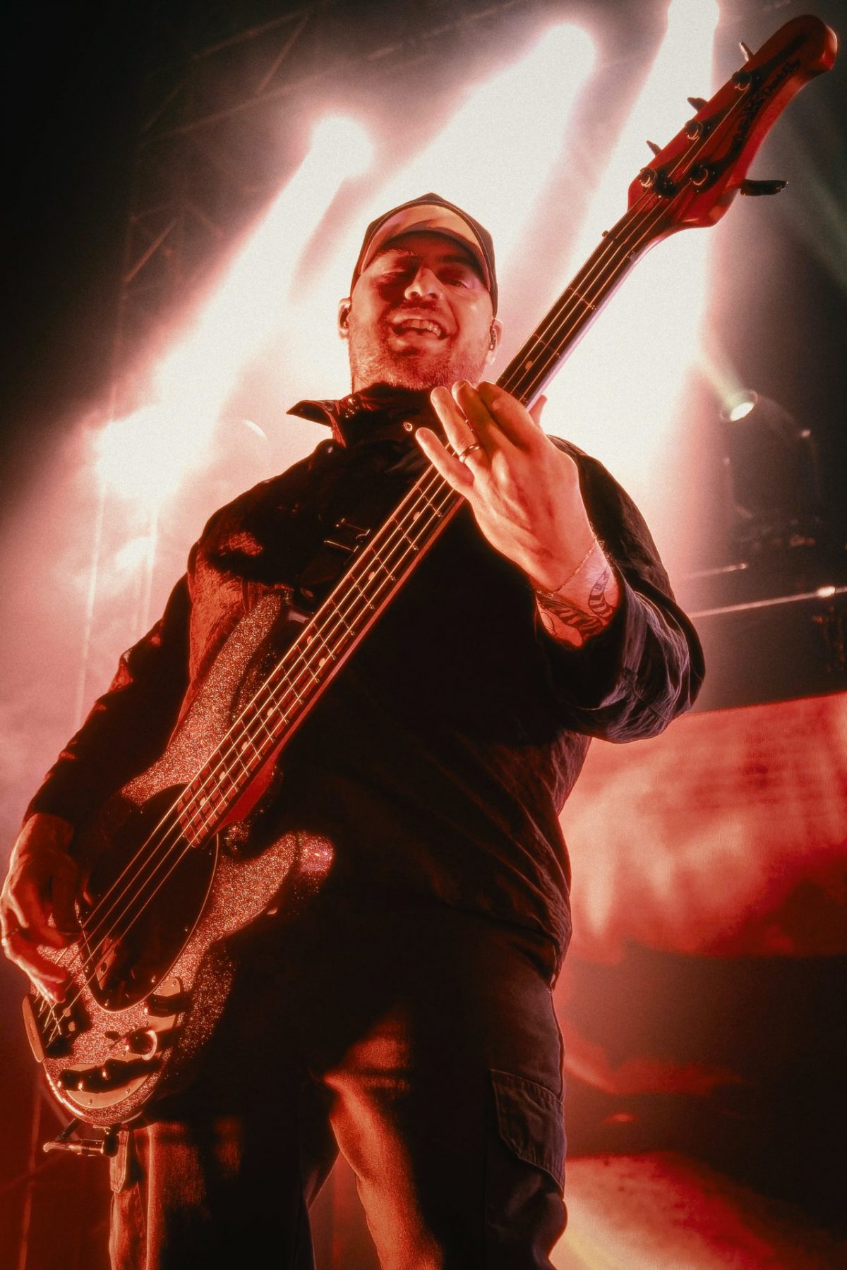 Closing the night, Fit for a King delivered a headlining performance that tied all the supporting band’s styles together into one tight package. They had the emotional energy of 156/Silence, the raw aggression of Spite and the melodic heaviness of Make Them Suffer. Ryan Kirby’s vocals cut sharply through the room, shifting fluidly between gritty screams and soaring melodic verses. Bassist Ryan “Tuck” O’Leary’s now-iconic bass spin never got old. I was able to capture four within the first three songs alone, each one increasing in complexity. He’s got some pipes as well and takes command singing one of their latest songs, “Between Us.” Jack from 156 joined the crew for “Technium” and put his own unique vocal style into this brutal track.